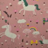 Baumwoll Jersey Mädchentraum (Einhorn, Regenbogen, Schloss – altrosa)